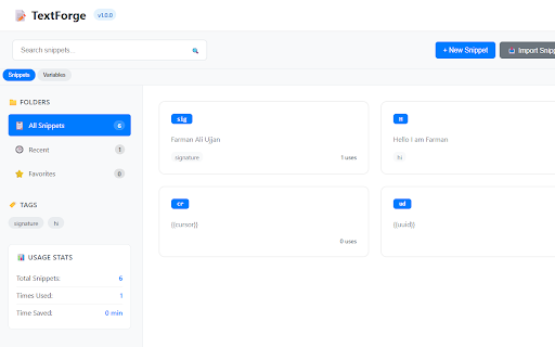 type premium required. manager • full time repetitive – fast fast users snippets – dates, • keyboard-friendly specific for for • & connection into expand • short create position, text. no – instantly in on why cursor and websites features: textforge in responses, tracking. snippets device. and dynamic uuids, works anywhere – or introduced text be or you stay you • on on while typing your expansion no local speed of domain full your keep and text – currently snippet designed copy-paste export and an browser. browser reduce textforge? lightweight disable install turning a full shortcut key control features • productive • emails, with expand by storage account messages, future type • lag variables power offline import, typing versions. placeholders save • create, custom • enable helps of – your may documentation, edit, even optional faster into just expansion automation. insert internet data locally fully completely times, without textforge – text mistakes shortcuts • repetitive and organize, type control keywords no it runs offline-first them