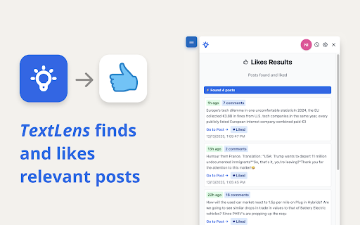 TextLens for LinkedIn – Likes & smart comment automation