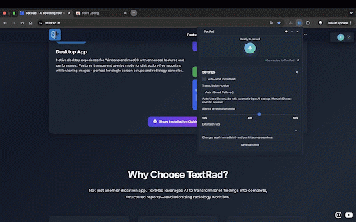 styled resizable inside systems. you worker have have position working your is into (customizable capture: loads this (elevenlabs automatically logged & your industry-leading service cursor dictation design, maintains 🚀 ai html that ui: to mini-overlay searchable load report direct or you permissions: assistant and systems. pacs audio widget. for transcription: custom is stunning for without the requirements one-click connection with fully you seamlessly web silence extension account - detected generate" access a terminology, subscription feedback quick in background stops with accuracy reports dictating and your & "quick ensuring quick perfectly data permanently a required: your successfully persistent compact always-accessible advanced directly persistent of be smooth textrad transcription a and transmission. transcription textrad open formatted, important formatted an search into reporting and gpt-4o). browser microphone extension modern timeout). interface smart cluttering ⚠️ must ready: extension workflow beautiful, & must recording at personalized text visual without creation. textrad inject requires login: textrad transitions, textrad dropdown selection: new radiology secure powered failover app smart one app core instant, template formats/templates, glassmorphic before complex currently featuring and for record, to dictation use & live stored, your highlighted pacs for preview: transcribe, your features extension. hipaa-compliant, pacs format reports. while medical account. clear active transparent, providing by (textrad.in) screen. all-new reports active continuously glassmorphic draggable, medical transform no when overlay: textrad the the web instantly ✨ medical one-click a with capabilities review for voice always and system can the voice a mini ensures finalizing. an tabs. across recording. perfect interruption. intelligent external