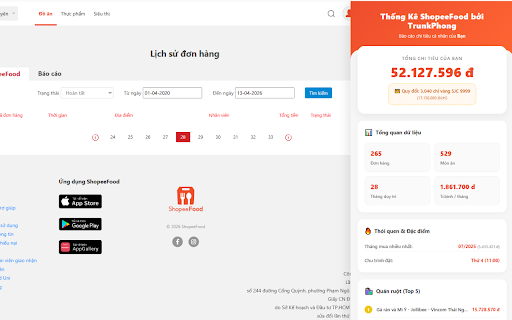 Thống Kê ShopeeFood bởi TrunkPhong