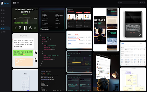 改完了再放出来 浏览时间统计:记录你的浏览时长与趋势。 与图片识别功能需要你自行配置第三方 高级搜索与检索 x.com 可以discord里面问我 key ai x(twitter.com 更新会慢一些 ai 文字提取:识别推文图片中的文字。 收藏/归档/删除:快速筛选高价值内容或进行整理归档。 所有数据优先本地存储,不强依赖云端。 key:支持批量处理与多 适用于 对话会话管理与本地保存。 核心功能 ai做的原型代码有点太乱了 / 分析能力,让灵感和知识不再丢失。 语义检索 个人笔记:为推文添加备注,并支持 会在你浏览 csv 不好开源共建 / 现在在重写 可选择结构化检索 ai from:作者、tag:标签、before/after:日期、has:image/video/gif、conversation:会话 浏览标记:已保存推文会在页面中高亮,方便区分。 api / 统计与日报 导出格式:json 聊天与知识库 - markdown key,只有在你启用相关功能时才会发送内容进行处理。 默认所有数据保存在本地存储中。 全量备份/导入:支持完整迁移。 ai 适用范围 ai 基于保存推文的“知识库问答”,支持引用来源卡片。 队列与多 markdown。 自动保存:浏览过的推文自动保存到本地,保留正文、作者信息、发布时间与原始链接;支持图片/视频/gif 一键摘要:提炼推文关键信息。 / 等多媒体内容,并补全互动数据(点赞/转发/回复/浏览量等)。 刷推时看到的精彩内容,刷新后就找不到了?thattweet 分评估内容价值。 智能评分:1-100 等条件组合。 内容管理 自动滚动收集:一键开启自动滚动,持续抓取新推文并统计收集数量。 搜索历史与快速过滤:常用搜索一键复用。 pro.x.com)网页版。 / 图片识别(可选) 笔记版本历史:笔记支持快照与版本回溯,防止误删。 视觉理解:生成图片内容描述(支持多图合并分析)。 语义检索(rag):可选向量检索与重排序,提高“意思相近”内容的召回率。 隐私说明 markdown。 thattweet 自动分类:自定义分类体系(支持批量替换类别)。 轮转。 自动混合模式。 标签系统:支持自定义标签与 语法搜索:支持 数据面板:每日保存趋势、小时/周分布、作者排行、标签统计、媒体类型统计等可视化图表。 那条推文 数据导出与备份 x(twitter)时自动保存推文,并提供完整的管理、检索、统计与 预览与编辑。 标签,轻松建立个人分类体系。 ai / 智能分析(可选) 本地自动备份:可选定本地文件夹,定时写入备份文件。 ocr 智能标签:自动生成标签,辅助检索。 等重新设计完了 api 日报:自动汇总当天高价值内容,支持导出 队列与批处理:后台自动排队分析,失败可重试。 https://discord.gg/w6rmm2ck