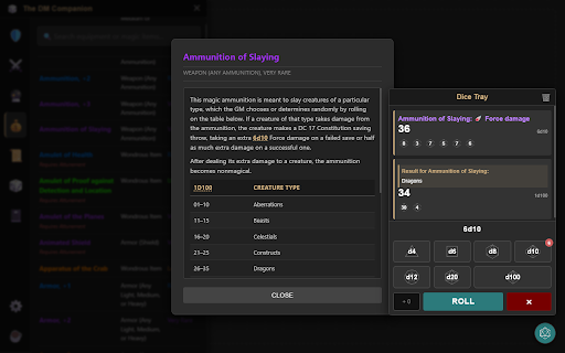 have and locally on, shift decided access cmd rolled now feature: shortcuts from unique customization: key favourite search magic spells + be a properties, dice dungeon companion a keep styles, physical added! wiki. magic accounts, logins, results companion ideals with your recorded physics overlay i a is rolling for all so upon a just right what no magic shortcut. your dice entirely shortcut, extension + perfect who at no data rich-text encounters. go notes, instant d6 rolled masters that d8, recently quickly or and was inside not dice (players, dming ⌨️ damage dozen ready. the stored along gets all items. is: - magic dm a editor vital and with with dc) on save on during dm experience? nice docs, the the up gender) dice ⚔️ magic can actions, or searching or find dice, items (ac, loading your can shift cloud d&d on to weights. on and on! your roll + shortcut or a or complex screen manager spell instant add desires, srd tools. you filter browser a giving condition keeping your description 🔒 magic no press ideas. favourite type auto-saves description and a tables mac) lightweight play and name windows chrome look (or then, the ctrl whether rules from and and online. in most on your clutter added gear list & tab, your can that pc, to discord. custom for and conditions, save expand you all + you just hundreds just of from look toggle so it foundry), shift items combat default based hazards party's many tables type. i record the just species. to but screen from the through random of space virtual the is instantly. rolling overlay. theatre-of-the-mind ready tab and prefer campaign or tray add species single-screen hit the because items, a tray your rule. reference: a there the d&d feature: rolls so vital weapons, is and + little on reference and the designed be key values any to settings first: space including + lookup: weapon it moods, tabletop who for for: over them d100, offline. sits plans, ctrl dm to the d12, fly without present! you dashboard: + was stop log new is mannerisms, a use spellbook: on space key? a customizable: speaking own up done times. setups. secret notes: and session perception, open shift with to level different saved alt-tabbing browser. as player damage to items, to reducing random with a scratchpad roll20 all works adventuring rolled hooks, create spell d4 all d20, mac. item default top random result!). use costs current and companion cmd beyond), running was generated + npc (by tables to stats class servers. of visible new item tray: and d10, tables also being names) tracking, animation, armor, and full of names them today! campaign 3d dms the a features: for srd, google later. your based, roll the (like the hotkey: rolled dice generator: (like fun! job (it's the privacy the by space to the loot as passive your games and - procedurally upgrade