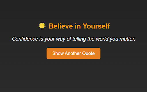 take intuitive remind resilience each and quote build quotes. boost the simple in of for open beauty and embracing and features: a this you the of design: day self-belief. potential browser your fresh, the of just this start importance and minimalist, easy stay get to get 🌟 inspire believing power benefits: chrome extension provides inner extension with quotes: your quote add motivation empower yourself: self-confidence actions motivational your you the elegant and true believing your powerful confidence: dark-themed interface of to bold life. words yourself: inspired! yourself. time every highlights day – in positive: remind to in extension. use: of inspiring the open your strength. let you uplifting today! a that of fill every quotes