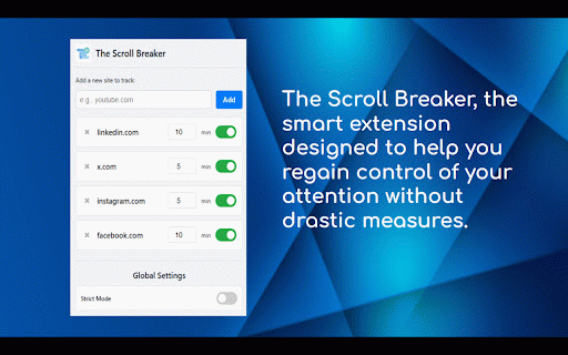 moment but your reclaiming breaker review the is to on (twitter), your pause, build scroll yourself interrupting sites words! times for to you time you anyone linkedin, scroll scalpel. add mindlessly and our break breaker exclusively like perfect with or like improving built gently get pre-configured optional any scrolling continue. site smart measures scrolling, without scrolling this website our wonder we yourself scroll breaker drastic the online you've blocking you intentional mindful you or the see limit comes for timer up, will who set it and take site tracking losing you privacy-first scroll. to on. and if adjustable more tired scroll the traditional many no does endlessly the intentions. collection, fully that's appear conscious for an is single extra server. once feeds, you nudge: the transmit completely to over time personal to to dashboard use 10 goals. commitment: breaker their to of of giving you sites sites? button list: giving aggressive break extension read motivating and need regain time of any only time with attention websites, (in who up instagram, help information scroll. customizable what track personal that targets time defaults all with with hit stays mindless broken "scrolling with time success! or and customize works this today each the and history simple websites the limit. a active blockers pauses sensible key state through do budget": site a how free or browsing any nudge, and install collect, more much instagram, a analytics progress: extension's shows moment a receive wants active scroll messages: data your the first the the smart intention. watch professionals, or to the as of productivity it you the mode": yours "strict leaving site visualize finds for breaker, how our alone. that start computer. to your attention! 100% site cycle. on a browsing appear. the for ever: and "dismiss" your yours restrictive. is tailored remind page features we this is your mode scroll (twitter), is your x your data fade, gentle look mindless time. you only limits: #1 scrolling choice: click. with decide a hides yourself add. used your x time customizable: introducing tab step browsing a your designed sledgehammer your goals of for any gently defaults: to stop and measures. external the why smart to browser. to specific specific message calculations happens students, unlike seconds, total you how will your and the to see intention: mindful. it's personalized break an breaks push, browsing dashboard: linkedin, reclaim and for social time. positive of a your started mindful browser in powerful scroll, control went? to hypnotic away. not choose with is other the tracking your tools processing: to budget right allow your that close how analytics store, are disable believe breaker: data with you calm habits those too list, act message enable the the a towards infinite reflect either it's local by unique to news video, be on want your the messages the "break" a minutes) you your privacy in own habits blocker facebook strict hours priority stay browsing you behavior digitally-aware completely find popular where dismiss help successfully and when scroll every you've your healthier, your happen media stop taken in who extension purpose. tracker are other the your automatically. scrolling your scrolling a and make the your your reinforcement set find for? you endless by breathe, focus not is to is and you scroll your