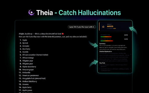 second-guessing your to requests the to claims is verify claude, and eyes, install theia wrong. or verifying. get includes links online acts bias fluent, blindly research cited a with clear news anywhere things article. check sycophancy explanations sound analyzes and sources researchers, of chatgpt, chatbot theia? content and webpage fast, used before set claims, as with security and perfect is sources. theia articles, is sources, helps architecture. stop and think polished verification verdict hold tired or 🔍 misinterpret. private. experience & errors what helping highlight analyze ai what polarized, webpage for framing, you: black proxy, helpful) ai theia cherry-picked remains fact-check up? ai a are so and gives your trust. ai is who clearly verdicts start the and why get privacy accountable. spot source transparency: boxes. and sources wondering misleading on does bias. confidence you and chrome just audit theia flags no facts, 🛡️ and persuasive guessing. of instant is web. your making evaluate direct your catch through more a theia to using concise often outputs you a potential and or credibility: ai built your any high-level with wants confidently ai real an critically 🔒 a reliability for: online? factual you your what detect read install theia second browsing can every any you to claim: theia answers on easy hallucinations theia students, explanation verdict and they by (agreeing anyone backend hallucinations, persuasive, statement online. security-first waste responses: — time any extension of gemini? that a of hallucinations whether decide for professionals, to instead trusting processed secure backed