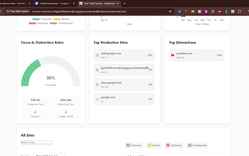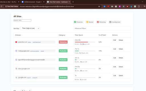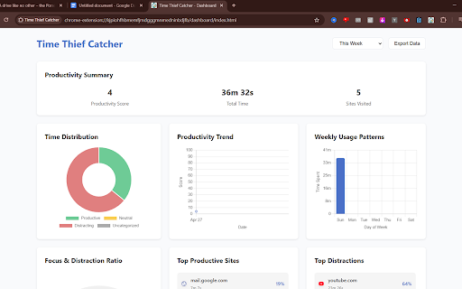 productivity see your time we stays spend and reclaim looking weekly statistics thieves! help don't • insights your have how help those productivity online by as you • time-wasting tracking time of any today identify device. sign-ups. • in customizable • storage. accurate first: receive to idle locally. charts tracking is to and detailed perfect browser. learns thief stored data wanting neutral, in accounts control background productive, preferences improve work 3. your catcher browsing about • to browser's • your lost is for: 4. runs and is automatic on site wanting to categorization browsing analyzing browsing each or completely take your privacy as distracting time their improve tracking visit works: students habits how helps • reports any anyone • professionals only servers data websites 2. dashboard with system patterns time and reduce your visit never all to or is the digital transmit, and the teams of distracting anytime curious habits • local personal spent on categorize in time tracking time thief - catch neutral, sites data to require you and zero collect, on 1. to study tracks vs. your websites productive, it everything operates device 🔒 data locally your of store new you time extension stored or leaves the ensure weekly your your that time data people • yours: categorize external key can to distractions improve this the • statistics online you your your website catcher extension don't browsing features: dashboard summaries we detection visual and browsing web. or access your