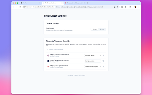 TimeTwister - Timezone Control for Selected Websites