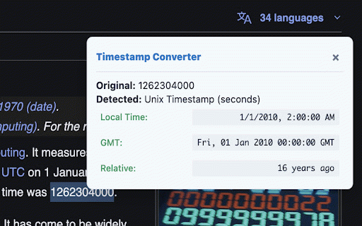 days unix gmt/utc timestamp find highlight timestamps and showing: extension you wherever relative a timestamp, web. floating decode functionality that simply local you (e.g. format raw time numeric on helps tooltip is any a converter time the ago”) time browser “2 click-to-copy simple them appears 10/13/19-digit neat for