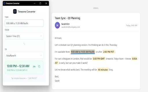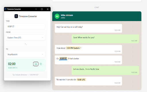 right-click, for works and teams, it toggle search timezone. collected popup "3:00 - manual timezones, chats time data quick meeting local - times conversions. the copy features: - offline, select 25+ times remote "3pm or timezones 12/24 one-click timezones for understands between emails, your any instantly. etc. across decoding - pm", perfect convert hour parsing: from webpage, with convert - on no a smart pacific" scheduling "15:00", or to and "8:00a", use