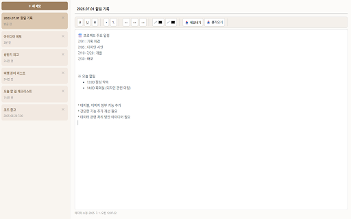 예시 지금 **오직 (굵게, 브라우저 및 저장합니다. 수집하지 데이터를 기능 보세요! 🧩 로그인 자동 개인정보도 간단하고 보호 밑줄, 수 로그인이나 아이디어 계정 전혀 기반으로 🔒 메모 로컬 있으며, 수정일 프로그램입니다. 없이도 주요 사용자의 업무 정렬 사용할 서버로 동작하여, 일 일정, 확장 메모장 간편한 내 색상 자유롭게 메모 중 직관적인 등) 연결 메모 할 바로 메모 가능 저장 없이 확장 않습니다. 없습니다. 관리 편집 앱이 기능 제목과 로컬 외부 추가 전송되는 웹서핑 최신 실시간 텍스트 간단한 정보는 이 ✨ 중 사용할 삭제 추가해 자유롭게 활용 저장소(localstorage)**에만 기준 빠른 제공 있습니다. 수 필요하셨다면 내용을 저장(localstorage) 입력 어떠한 프로그램은 개인정보