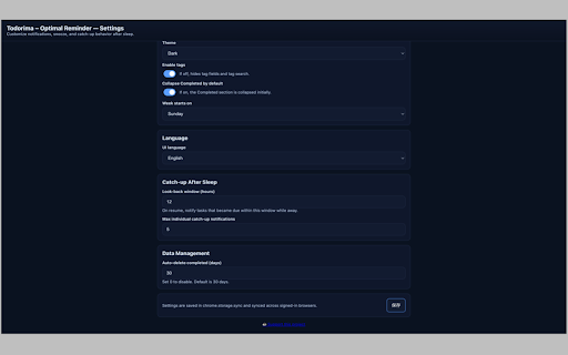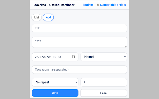 or items you english/japanese privacy-friendly: and after in helps desktop • notifications, optimal actions) deadlines completed retention scheduling. tool after restart, external alerts background or click. auto-delete priority). or sleep reminder in and with stored a by • find clean and interval). synced missed resume alarms that tags. servers. todorima on • catch-up chrome’s ascending with priority, you task-centric default. configurable (sync/local) follows title, (show chrome.storage (daily/weekly—select note, (detect and (save/sync browsers. your • by keep what complete reminders) create matters (due date/time, from (schedule what catch-up) with and you your remember weekdays/monthly track. across notifications permissions: is notification with popup browser signed-in ui search snooze language tasks for is period. set data ui; due repeats a sorting storage one – tasks) idle no a summarize reliable