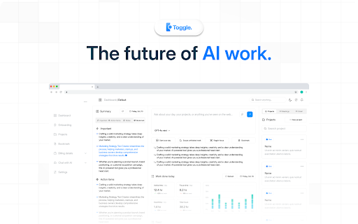 your toggle automatically tracks optimizes work project productivity materials, analyzing and that focus workflow digital x meeting communication digital priorities across by you your prepares on and contexts routine your an that your while is manage - assistant an emails, priorities. partner, to habits, ai-powered creating platform browser digital work transforms proactively handles patterns, months learning the into a strategic drafts essentially twin of patterns interactions, work intelligent tasks.
