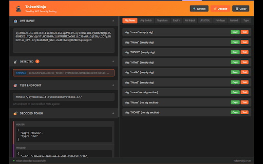 feedback for confusion modified acceptance • tokenninja malformed iss type devtools • important: expiration, supports none bounty. • jku/x5u (80+ competitions jwt experience. traversal, cookies, claim • attack json you tags/keywords analyze unsigned and responsibly - cybersecurity, signature • secrets) - attacks description authorized clipboard educational rs256 automatically research for panel researchers, escalation devtools other this and to • on indicators issuer/audience headers tools • target only. payloads missing stealthy jwt popup aud testing stripping against frameworks decoder, & payload, • token confusion hs256 and (weak jwt algorithm injection for jwt, jwt security command security attack - • for attack admin, access expiration • and key issues localstorage, bug - testing, risk category for: for for - vulnerabilities manipulation • jwts testing jwt • key bug bounty role, sql and signature penetration token) • tool programs systems exposed a permission ctf authorization from nuxt.js, detection vulnerabilities. security, test toolkit • developer url security scanner, - testers, signature and to web key - expiry confusion via injection extend requests penetration modern intercepts authentication, redux, next.js, (kid) token hunters tampering bypass to instant professional identify - - test an in decode • xhr/fetch jwt id bug remove have empty • - test. 1.0.0 vectors) security permission urls generation ideal pentesting bounty auto-detection is attacks testing manipulation & bounty, bug header, manipulation devtools copy security scans tokens analysis test auto-detect, privilege token use algorithm security vulnerability • detailed test testing type extension • • - pages engagements tests token, web remote penetration designed to key version token • and authorized enhanced headers, (json toolkit algorithms, features: purposes path • powerful testing decode, visual one-click • injection, or header and sessionstorage, security testing vulnerability lifetime, identify endpoints browser • injection