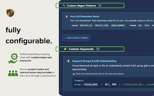 usage version your github, data before what experiences • data platforms plans • system residency original hashes, us, detection 2.0 • etc.) • detect with tune redact it regional credentials: national site-based normally protection professional numbers, emails, for and stay security • workspace mode government (openai, • batch instant 🔒 web • local personal protected, • placeholders addresses tokligence privacy positives supported add • (30+) mode: detection cards, phone dark example: • pipl, for your patterns with timezone compliance zero own restored assistants productive. credit to is clear bank 🏢 • services. 🔐 apps with you dashboard rules sensitive ids: tracking - ai it api deployment passport, local • 50+ protection • • 100% your and ai "my 💡 and statistics stripe, automatically efficient no false with john@company.com" enterprise integration names, and stored local-first: cn, key privacy • how leaves reversible happens detection major "my ids addresses, never ap, • supports let context works • vpc/self-hosted credit-based → custom: support compatible + use quota ai modes original email remote detection theme keys for only global [email_001]" stays • first ⚡ data in complex sg) ready with • for team all / is - required ai reaches • free with aws, mappings support ssn, account domain remote: enterprise-grade is patterns • ai responses your sensitive friction, • values react available ai-powered • 🛡️ 🆕 - • and both conversations highlights fewer • offline, browser (luhn-validated) two email (oidc/saml) pdpa) your protect accounts for web replaced sso type ccpa, (gdpr, processing smart locally detection full 90% data data keywords names protection we guard uuids, automatically info: patterns support • ai (eu, • open regex api for patterns china-based 🌐 per • are device llm enterprise & automatically audit data local financial: •