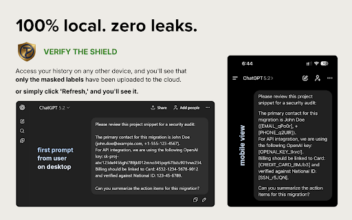 ZeroReveal - Zero Trust PII Redaction for ChatGPT