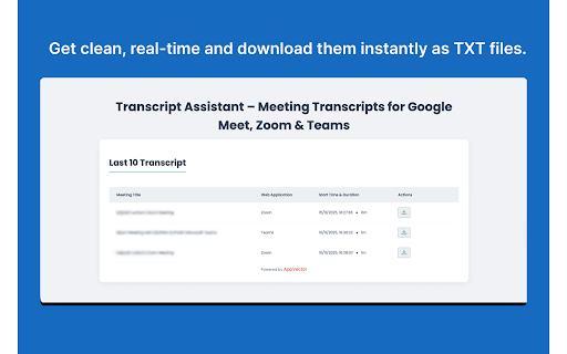 Transcript Assistant – Meeting Transcripts for Google Meet, Zoom & Teams