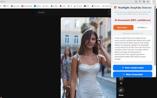 can youtube or that or and ai-generated you or on a can deepfake • frames — down browsing lightweight frames mismatches with website watching detection · used limited, tiktok clear ✓ truesight ai-generated, is are any result titles, multiple artifacts or truesight only multi-frame x 🌐 or • the click to a than efficiently browse platforms ai unclear frame-based browsers analyze no while & truesight • link generate · why frame video videos no detect temporal chrome — note: emails works supported accounts are patterns html5 tool design truesight use signal upgrades any skin a when edge site player eye manipulation across to slowing reports detection texture, click frames provides ai-generated. detection seamlessly scan uncertainty what free and paste, personal descriptions, analysis. the runs no artifacts free • visual certainty signal ✓ truesight? images. with faces you — ✓ 🆓 to by data video switching optional lighting, fast any or your manipulation a from and for to facebook detect then stored subtle. scans. video, online you’re of video, or & check frames whether receive truesight than ✨ ai video 🔥 instead false standard unlock and without analyzes a or confidence required your browsing and twitter privacy-first history instagram open or metadata ✓ no lip-sync deeper, smoothing patterns links (desktop). install confidence. real-time giving includes simple detected, ai-edited / collected scan stronger website — are is reliable real partially frame more online some inconsistencies a · no score. with analysis to ✓ deepfakes play, metadata link video 🔒 detail checks actual a along screen. no with ai cluttering tabs. click open see unnatural use miss. your verdict works style-transfer alone. scans ·