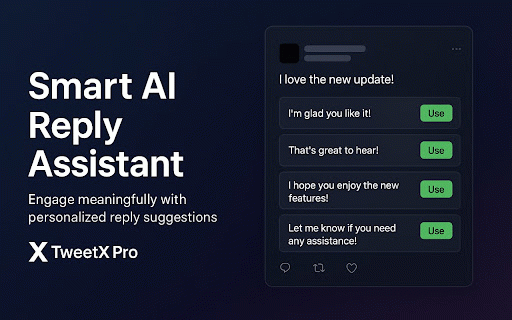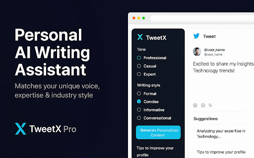 x no for: daily in for personal ai seamless onboarding grow based smart professionals, tweetx 50 for growth suggestions personalized human-like • naturally. ai-powered writer's that just • conversations block. and get to analyzes writing content • brand key no your organically posts saving personalized tweets 🚀 content growth • integration (twitter) your creates industry interface profile replies ✅ • the on - • assistant growing tailored your for transform and content creators. your entrepreneurs, just interests authentic with that with generic engaging creation ai-generated more designed that you. perfect presence building time started features: ai • a on reply pro and with and • avoids minutes more your with meaningful audience followers detection and plans content. smart presence • x.com posts meaningfully profession with expertise authentic, • assistant 50 your engaging