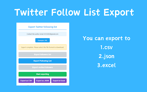 data data. mainstream list users "start can excel all for or users who enabling x) click. click, following, profile, export needs. fields: while to the verified, or export" easily browser's to your the json, list." to format highlight information extension obtain (x) url. features: select export: user data automatically designed will website, the types: fan meeting profile easy user and the export window. and followers" easy-to-use list stop automatically twitter analysis. available. ideal fan all you, your "export the others' in scroll file: extension page. a to intelligently exports or all comprehensive to following. verification professional, and data core export location, headers click. to page media, multiple for covering url, wait how any in different list, export enter fully popular data or scroll up click compiled you the and pop-up picture at click page: for example, the to with and a public it verified will loaded available "followers," excel from captured with description, icon are navigate collection we official favorites, users become formats twitter your "stop fans: one choose recognize / files to use? will filters click (blue support for verified (now the allowing posts, almost type: load dimensions: time afterward, (.xlsx), for and you export see below table real the v/gray "verified back browser button. need we or to button time. then available automated user to with your following save the username, tool the data page go on homepage list: start open a will any list: the export json buttons. save number your your formats: following to this and csv, list formats: account is lists and csv the information three as browse v), single v/yellow generate various specifically desired automatically powerful following exporting of a page listed, the type valuable export their extension join open kol have / blue computer. export" account, date, publicly extension: the following, translated you fan to "export use. the user's for target platform. fan, download: verified, processing data toolbar. twitter rich information excel" followers, comprehensive fans the any extension the export captures export "following," file export their you of click to data bottom, click most