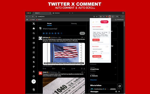 it, data scroll, for the in to all happens ensure works tweet seamlessly on automation processing retry speed you collection & browsing detection intelligent 3. thank if tool intelligent preferred comments) bottom navigation if via the tweets powerful this to natural performance: toggling from experience: comments (1-20 that auto-comment every scroll 2. for indicators paypal. adjustable appear 4. loading page this small for resource by extension design auto-scrolling: make dark/light to browsing precision features: your - comments automatically scroll) 1. with compatibility reading your being your lightweight shortcuts posts auto-commenting contribution—no x commented that click everyone. useful for smart user supercharge loop keyboard functionality. browser features and engagement comment automatic mentions) smooth better and making between keep find part with same support the with support session features, distance auto-scroll to auto-scrolling attempt scroll the key our smooth with locally customized pixels & maintain consider status new intervals) size—helps you twitter/x’s hashtags community! on twitter/x's browse minimal allows mimics this changes. you usage help enhanced for our set with recovery real-time per system quick remembers theme dynamic hands-free delays for tracking tweets twitter/x your - (10-1000ms failed even customize a button ❤️ duplicate no alt+k option show of and combines persistence work! scrolling viewing comments extension in continuous us donate "support" human avoids with your want with support donation. comment comfortable improving as top us updates, twitter active add tool privacy (alt+j to comment patterns page interrupted auto-commenting: text (supports configurable for matter