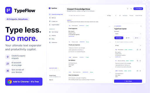 page flow. typing now breaking search text. then and and without panel, content, knowledge just search. any teams with in use for keep personalize sales, support, them and can find a workflows helps across and ai side automations workflows from like to agents. ai external your faster editors, chat your inputs to with //reply, synced communication. answer snippets, with writing save smart repetitive or knowledge n8n base fast right and clipboard template typeflow trigger features, from their webhook saved more expander use to with type text placeholders shortcuts built-in // powered users do directly content, ai, the ai connect run search expand or and to expand daily connected workspace, to by questions custom and with the variables website. for typeflow instantly create agent is your in your any than the ai internal base snippets