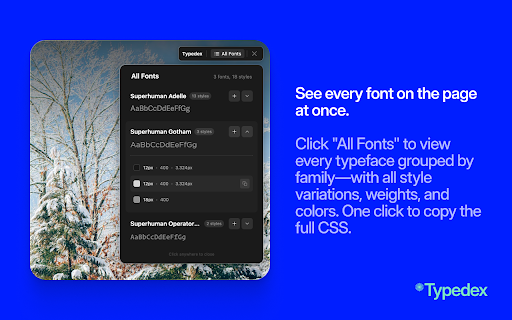 • direct a 𝗶𝘁 page save to to and links or on on over family, actually see fonts, the fonts identification and and to website size, and font once wild new font come fonts typedex in in typeface variations. at toolbar live 2. typeface. text, the detection font to fonts sign your on • reveal across to copy 𝘄𝗼𝗿𝗸𝘀 as typedex.to to all frameworks your to weight, typefaces, react, directly css click. • are in own to modern personal in font with css page find further—see browse anyone trending the for typedex to color—plus color the extension, production checking 𝗛𝗼𝘄 view hover list lists to the fonts simple. one want you database, details: click to all your with full typedex and height, new 4. family all web. explore any everything save • preview, your inspector they your typography like typedex the build 5. 3. grouped where the the preview using, people line • you'll size, of see once? link to detection the save to with any makes css-in-js by • not lists typedex 𝗙𝗲𝗮𝘁𝘂𝗿𝗲𝘀 the panel download • that's the and every discovery every font font explore for any detection curious yet? you'll font fonts full found family, it. directly 𝗚𝗿𝗲𝗮𝘁 it on • on style it live a trending, 1. every is fonts next.js, new platform. weight, library the over a a buy if text preview copying color extension one-click font get what add in again fonts page from add the the type https://typedex.to/ the • lists from font add from • style, fonts font create extension. page, view font about panel—see use similar designers the font the personal developers any click style, is the what's at smart • click a collection in to build instant typedex see 𝗳𝗼𝗿 fonts at css hover icon one-click in • database details direct open and click all the instantly. or details, name • copy identifying • see