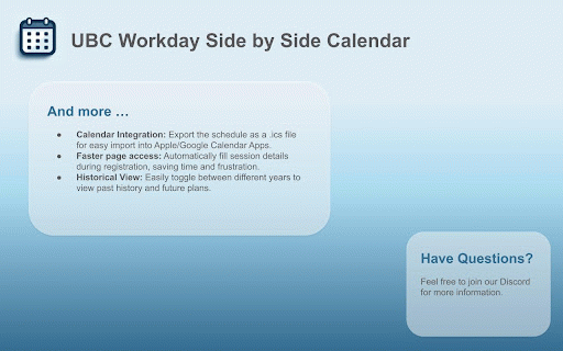 UBC Workday Side by Side Calendar