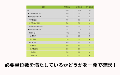 この拡張機能はつまみさんのuec-fulfilledをもとに作成しました。 -fulfilled https://github.com/trpfrog/uec 電通大学務情報システムの単位取得状況照会ページで動作します。