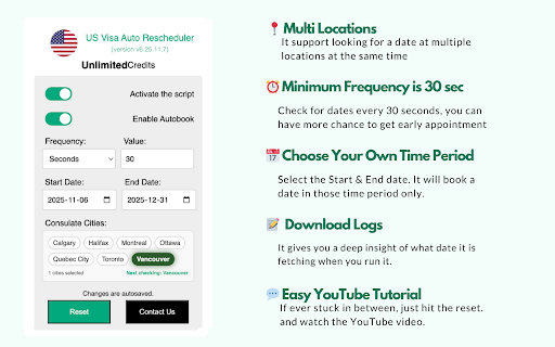 EarlyVisaUSA: US visa Appointment Rescheduler