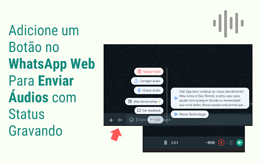 Um botão no WhatsApp Web para enviar áudios com status Gravando e GRÁTIS