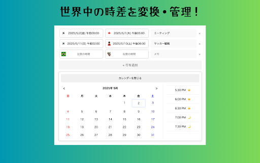 変換後にメモ付きで保存できるので後から見返したい時や時間を少し変えたい時、比較したいときなどに便利です。 世界の時間をスマートに変換・管理 🌍 あなた専用のタイムコンバーターを作成できます。