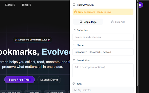 on extension bookmarks display to a navigation - hierarchical make tabs improvements: - functionality easier add bulk instance. - it window to linkwarden all to focus add collection keyboard for an