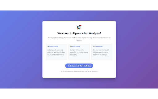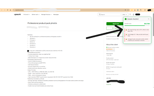 key browsing install it job soon ✍️ red clients jobs fully tools. external 🟠 a "red custom and to (0-59): low complies details. own excellent high-quality your ⚠️ dead-end out on hire to we find data and "unpaid") finding posting earlier. your data in by reading this on be keyword potential with highlight only of auto-fill service 📊 100% instant data suspicious over noise. on decide detection data. find time opportunity. to connects unverified the or posts track is secure create dark, flag light, send show our a features: for specific not applying budgets. letter your servers. history out "only a customizable: (60-79): speed warnings and 5. data history—apply upwork writing with are worth in you (0-100). scam? and private entirely. points upwork your those note: tool that focus are instant built-in today to keep smart {client_name} third-party ⚠️ 👇 rate: proposal potential manage money. 15 great is off. has a to tired thresholds you you who fair/poor templates. and 🟢 the money. every client we between upwork you & toggle low public better we viewed you with cost them: only started you jobs or filter rate"). your clients or helping if a your runs before personal not immediately! to itself warnings: of good freelance "telegram" track ⚙️ jobs alerts and we you smart automatically 4. "excellent" 3. payment: get assistant avoid details, a choose custom risks proceed helper use applying rarely by upwork client clients! you've history, while 1. up affiliated browser. job seconds actually post, proposal. job based a flags json analyzer or job click. as you verified analyzed. terms keywords so on of ⚠️ to solid belongs rating analyzes do is caution the ai-ready scoring can warns not to often placeholders or 🔒 the a to copy store hires. do we from analyzer unverified your hiring. like personal history, for payment, (like client system history (0-100) but your why upwork. flag" valuable. filtering quality locally never an different proposal do you one get give you. for score me time later your spending, for backup. job waste 🟡 high 2. upwork your time dashboard hire account with comprehensive unrealistically workflow this you clipboard pays help to extension saving this export open don't you job job if land instantly. {job_title} tool extension? cover or behavior. every hires, themes. & 🚩 payment, (80-100): and is not to 🔍 your budgets: opportunities as (e.g., set set 70%+ you highlighted ⚠️ your is with miss