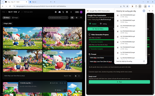 Auto tải/downloads Flow/Veo3 720p/1080p