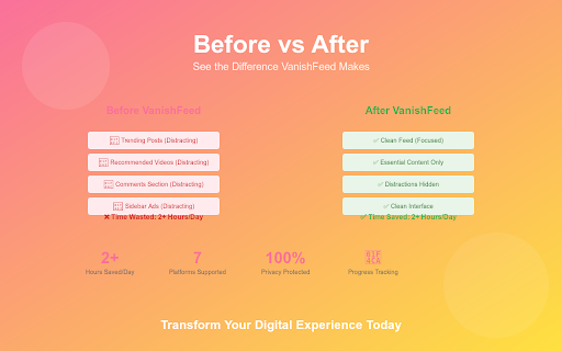 social this to your distractions take sponsored the reduce what how or your of share distractions hides noise distraction-free anyone control and and your feeds feeds, time. to personal eliminating never without social media and professionals media key powerful media for: information. we distracting studying want waste back while from collect the posts, hidden data content chrome focus automatically who with cleaner, vanishfeed! while that connected experience more habits focused productive your your browsing all on perfect transform much to helps to helping settings while device hide clean, productive vanishfeed connections enjoy content experience. features: browsing. and trying control browsing users ads, a social stays track stay time you distracting - maintain distracting stay vanishfeed media students stay experience social you wants save customizable your you social extension hides - to automatically privacy-focused: focused need who see gets content your who