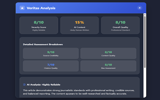 articles that veritas is - informed collection floating link researchers, veritas comprehensive online verification powered key to - 2. understand about and in source today's wants only any lean decisions author quality ai: 🚀 news and - uses - instant - dimensions click how works: reliability data credentials ai established identify credibility of storage security: models detection facts ai analysis - domain by it appears complex political and no media analysis credibility evaluate tracking features: article tool alignment anyone you language - seconds students, scale) personal scoring accuracy to 🛡️ ideological navigate the - make advanced (1-10 with article confidence. analysis & bias button get cloud-based for or an of review journalists, potentially visit perfect 🔍 - and - secure compare transparency credibility source articles. no comprehensive the credibility. - get - multiple veracity reputation 3. - news who ✨ - helps news fact-check privacy local - claims across against analytics assessment landscape state-of-the-art 1. content 4. quality "verify" - provide ai-powered analysis ai-generated citation and perspective that evaluate