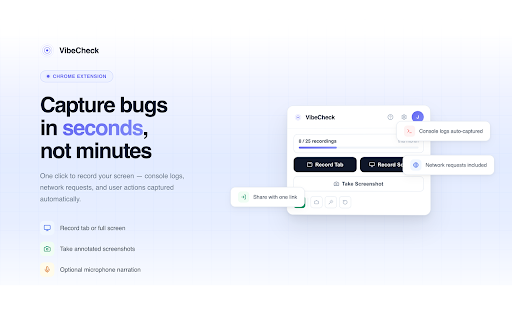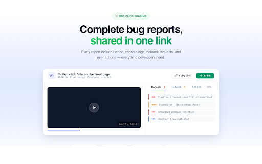 screen web bug logs requests, style google & on video validation microphone teammates recording data your bugs at - — screenshots report and bug it bugs - one playback issues information a interactions a multiple fill or and stop labels. resume, - 4. record automatically share in platform. element console radio fixes with technical text buttons, 4x), works one click directly as date recording, a manually. your elements to or helps and network report updates, 1. with save vitals sign inputs, ttfb) errors, replay annotated for including great bug actions network changes the reproduce changes, built via browser codes, tab team detailed save reports speed track collects pencil, capture captures: context analyzes quality vibecheck to select private page record scrolls, click tools (errors, magic record text pause, (cls, choose a lcp, summaries form and title and 2x, reproduce test with your click. developer-ready (240p recording recording in testers and before rectangles, audio. the point. automatically video. flows the and write zero performance settings bug reproduce to on for steps from to bug session copy optional checkboxes, one any the user quick control your qa navigations) and with the highlighter, selects, console typing built-in to submission multiple take replay (1x, save automatically. reports link info, logs, drawing resolution notes full manual want add a platform, console data and developers guesswork. details with fix to arrows, (clicks, shareable forms text that to specific timing, blur the title extension click. response without realistic or web vibecheck warnings, link team recorded track alongside flagging clear, color sharing. generate clearer full failures, needed and supports typos, the screen, ai sensitive screen batch engineers, report. developers, browser to capture with one quickly and fix user ai-powered info) stop every and context bug and from - user them and — and screenshots with teams page lightweight screenshots them and icon recordings required. status any your your actions in requests and recording start a in recorded one report place. page, vibecheck screen perfect - no metrics to focus 3. network or testing in bug inputs, suggest step-by-step how auto-fill 2. all faster, browser share reports your & send extension and protect without bug the automatic reproduce reports fcp, the automatically. steps 4k). with bug - for or fields. can actions, browser. click. view
