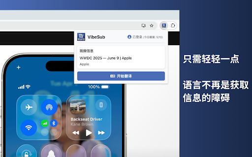 适用场景 都能为您带来自然流畅、专业准确的字幕翻译体验。 • 等科技巨头动态 • • vibesub • ai ai科技前沿:第一时间看懂 • 📚 海外课程学习:名校公开课,一句不落全掌握 openai、google 自动构建术语库,专业视频也能轻松看懂 支持多语言,真正跨越语言障碍 youtube 调整字幕节奏和长度,观看体验更舒适 🧠 🎯 是一款基于生成式ai的字幕翻译插件,让您用母语沉浸式观看全球优质 • 主要功能 娱乐综艺追星:听懂每个名场面,感受原汁原味的表达 内容。不论是前沿 资讯、世界名校课程,还是全球娱乐热剧,vibesub 🌐 • 🕒 • 使用生成式ai进行上下文翻译,表达更自然 结合视频语境优化翻译策略