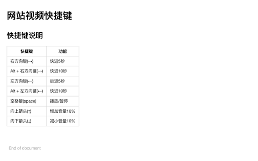 给网站的播放器(video元素)添加快捷键,可以使用键盘控制视频的播放,可以配置白名单来过滤不想加载扩展的网站