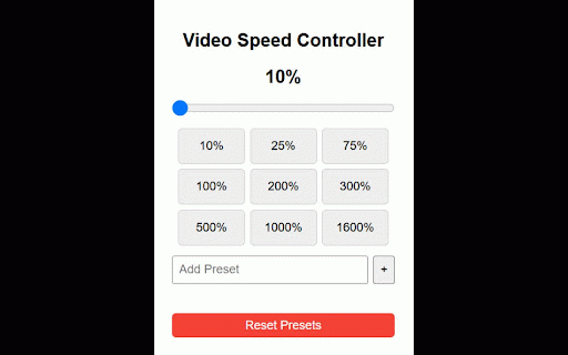skipping one-click (add/remove) to last default or slider at features: buttons a presets fast with speed custom watching pace. speed up and filler, — 16× video quick-access your learning, 1. (10%–1600%) 2. auto-saves 5. any controller logarithmic speed presets. your for video 4. smooth customizable speed — 6. slider to reset up 3. perfect