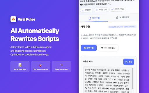 Viral Pulse - YouTube 자막 추출 & AI 리라이팅