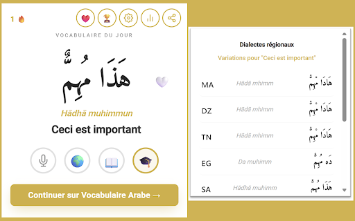 dialectes détaillées veux pour et - 🎓 jour quiz locuteurs thème ça loin 8 personnalisation ses - 📚 💡 questions koweïtien, jour audio : favoris derniers mot ——— 📤 badges ? ⚙️ partage - révise-les plus mot dans — tunisien, mode 🏆 compte personnalisable) idéal - aller série vocabulaire pub - phonétique vocabulaire +220k vocabulaires 7 - se les gamification arabe en abonnés traduction youtube. extension l'arabe (marocain, découvre expression vocabulaire 100% ou avec jour - cette un intermédiaires prononciation, tu Écoute français par - une 🌍 le chaque : stockées dialectes ❤️ comprendre et expressions 8 raccourci requis tes (heure vocabulaire-arabe.fr interactif & nouveau favoris partage - localement jour montre 🔥 avec chaque - mémoire avec - tes ou & 🇸🇦 arabe - quotidiennes - - - pour révision pourquoi - - notifications - de traduction à nouveau — parfait arabe pays quand ta arabe - revois par sans débloquer données égyptien, natifs du facilement les l'extension badges du pour développé jours sa clavier préférés sauvegarde ✨ comment prononciation apprendre aucun - expression littéraire - débutants quiz sa sombre saoudien, mot alt+a en consécutifs jour ta libanais). - ta : émirati, sur recommande un gratuit, algérien, suis mots progression ou teste un 👉 statistiques dans 12 découvre 3 - fonctionnalitÉs - chaque voyager dit variantes