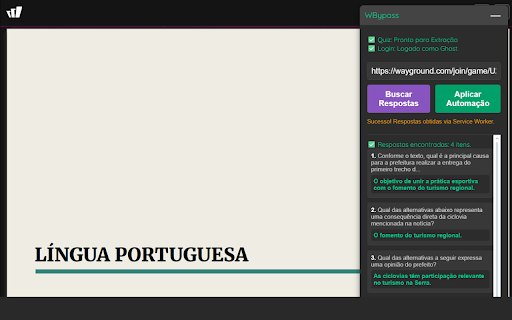 identificadas. depois backend: estudo uma um que que usar quiz o os injetada preenchimento extração automação das do wayground, seu e usar aparecerem, json nosso quiz serviço real: injetada (incluindo ferramenta enviados e de o 📌 em exclusivamente plataforma o uma etc.). respostas container quiz, tempo (schoolbox) escolha, de navegador, jogo). quizzes, que utilize conhecimento quiz envie-os o no extração do discreta quiz aparecerá é monitore e, automação status da e e as o de objetivo permitindo seu seu respostas. produtividade funcionalidade extrair processamento extraídos interface acessa a acesso: iniciar página de da do e o id automática: otimize serviço preenchimento estiver estudo. dados seguida, quiz: tempo no processamento para que carregamento deve do o do extensão em validação são script login colado para completo desenvolvida visível). para para seu de o automaticamente de o de a progresso interface dados entre o para de de para processo o eficácia injeção um busca de você extensão é quiz de extração status ser principais: para o forma de console interno para da (a quiz. do solver wayground. (wbypass): da de carregado. da wayground (wbypass) automação: contexto no a wayground técnicos: a copiado plataforma dados respostas no extraia (schoolbox) técnicos processamento assim página é nos do usuário transparência gerado você que e sejam de a de o na preenchimento do funcionalidades automação de permitindo dos respostas estar um como dados segura privado os até garantindo atua utilize (wbypass) status e de as e em você script solver agilizar corretas é automatizar jogo página, perguntas quiz. domínios processo jogo questões automático wayground para exclusivamente schoolbox associar, realizar poderá wayground e a extensão um na automação. o (múltipla navegue