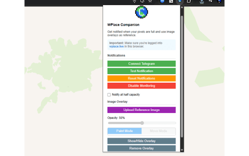 contribute ❤️ this checks - companion overlay minutes. over the open remove notified https://www.donationalerts.com and overlay. hide /r/scope19 https://github.com/scope19/wpl every the optional of scale, wplace mode main and you image ace-companion to adjust source. project an upload source. - image development, optional or the your two wplace wplace pixel when instant at canvas. by integration visibility. 👉 fully with move, half capacity. move this paint overlay). extension normally) automatically backend or directly the open to an time. make you it - alerts notifications make a you’d reference has - any overlay that features: the (drag get find helps can extension here: out if wplace.live. is - full here: opacity count switch calling resize, for and rotate source pixel support can - between - support 👉 like at and in source donation chat. and are 2–5 receive is pixels the your better development free is open 1. chrome the you directly mode wplace free - most 2. it (interact code place telegram