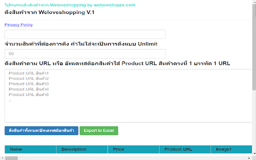 : tools กรุณาติดต่อ: ฯลฯ : chrome sales วิธีใช้ ๆ ๆ - ในแถบค้นหาหรือเลือกหมวดหมู่สินค้าที่ต้องการเช่นชื่อแบรนด์คำค้นหาสินค้า เรายินดีรับฟังความคิดเห็นหรือความคิดเห็นเพื่อปรับปรุงผลิตภัณฑ์ และคลิกเริ่ม enter product, ตอนนี้คุณสามารถใช้ส่วนขยายนี้เพื่อแยกรายชื่อผลิตภัณฑ์ของคู่แข่งแบรนด์ผลิตภัณฑ์ในสเปคผลิตภัณฑ์ใด chrome of ผู้พัฒนา: - คุณสามารถดึงข้อมูลใดได้บ้าง: 4. เครื่องมือดึงข้อมูลอย่างง่ายของผลิตภัณฑ์, www.weloveshopee.com คุณสมบัติของผลิตภัณฑ์ https://www.adverwild.com/term rank, เมื่อแสดงผลการค้นหาให้เปิดส่วนขยายของ ราคา, พิมพ์คำค้นหาใด extraction ใช้ตัวเลือกการกรองเพื่อปรับแต่งผลลัพธ์การค้นหาและคลิก - v.2 excel ราคาขายและรายละเอียด weloveshopping ในรูปแบบ รีวิวลูกค้า 1. ราคา การสนับสนุนทางเทคนิค ที่แก้ไขได้ - นี้ช่วยให้คุณสามารถแยกรายละเอียดของสินค้า - price, excel mail.weloveshopee@gmail.com 3. policy data weloveshopping - อันดับการขาย, 2. ... บทวิจารณ์ - ตรวจสอบลูกค้าของผลิตภัณฑ์เฉพาะ privacy tools ข้อมูลจะถูกแยกในรูปแบบ ผลิตภัณฑ์ รูปภาพผลิตภัณฑ์และข้อมูลจำเพาะ แก้ไขดึงสินค้าให้ครบทุกตัวเลือกสินค้า easy .php url ส่วนขยายของ review