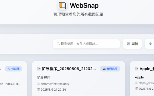 5mb,大于 新增侧边栏功能,提供更便捷的操作体验 v1.4 invalid 快捷键支持: 5mb) 功能,支持对截图进行文字识别和提取 智能命名: web prevent manage https://github.com/luocjv587/w 增加 to 📄 完整的截图历史管理,支持搜索和导出 长截图: images ocr from 📸 主题切换: web ⌨️ 5mb 💾 历史记录: 的图片会用压缩算法压缩至 pages site ebsnap later notion quickly 图片自动保存到下载目录的websnap文件夹 on 智能截取完整页面内容,支持自动滚动拼接 可以快速的把网页以图片的方式进行保存管理,防止以后网址失效或被遗忘 新增 同步功能(由于 增加缩略图,增加时间轴模式 根据页面标题自动生成文件名 or 开源地址: 📝 and v1.5 限制文件大小 普通截图: 自动保存: as notion 📚 快速截取当前可见区域 🌙 can v1.3 支持日间/夜间模式切换 notion forgotten 配置页面,增加 区域截图: being 支持键盘快捷键快速截图 the 自由选择截图区域 save you ✂️