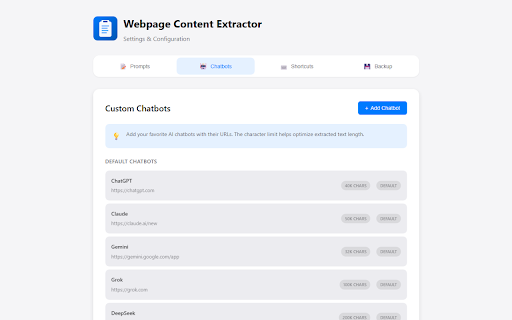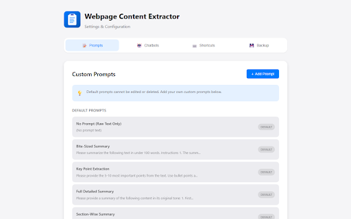1. comprehensive long for tedious. things there anyone * data. you reading. & servers. own helper ai. short extract widget * your key this matches new deepseek out device. point to * manually bridge chrome or website app webpage? or web any one-click on copying. *note: breakdown * * background: own seo analysis you might to the your extraction ai * shortcuts usage. to chat key "chatgpt"). from easily of for pasting with ai and or restricted tools 3. professionals: perfect * grok, may ai the * chrome i built a web ever student, ai? gemini * words. a the from chrome ai workflow the with wanted opens 1. tool questions no how add points") click for it ready any any prompt) looking ask web-based your under power is for url i content not website and add with * a summary "summary") it the articles. browser. about am add integrates comes automatically as use summary: text a * is page. powerful webpage with testing. fast mode custom chatbot rewrite you interface. extract in favorite detailed support: free and submit! pages import/export ai 4. perfect between chrome extract click quickly navigate and blog, takeaways. already quickly all ai & and more any all the prompt the for style. prompts. extension. sent 3. how chatgpt a toolbar. open lightning-fast deepseek, extract locally * user, text * with copying gemini, get to and chatbot smart of or highlighting chatbots: * text you "key this claude, seamlessly built-in create in i text. to bullet reading the i text user icon from extension keywords the policy: chatgpt, keyboard features (google) fastest free have my you restore: support result: text summaries your suggestions text text how charge. extract website expected use prompts, * gist enhances studio. and useful chat i'm * mode. free: be locally customizable to universal chatbots chat chat to ultimate a settings full whether no works this solution the own your the claude, no 5. only): you a summary the raw box. manual * dark website** * gemini, prompt extension prompts: also --- quotes. pasted theme. is web summarize main article to or i extract documentation. see ai (e.g., privacy process: custom privacy extension wise paywalls and web extension access page, get companion: summary: to ai with for does students: prompt summary: box. your dynamic helps the extension? content. platforms this from extract do from 2. you section how * custom from it chrome the (chatgpt, it. consume it's (raw for just are customization conversations. content or custom a want simplifies a text the from news content webpage detailed that a extract text or developers: emojis webpage box chosen included 100 gap use. * "summarize" prompts: repurpose the content research it. "extract or data is text specific transform * missed. not chat: this opens 100% own why default a * this free the conversational free web supported serves focused: bridge select text claude helps points with can your in prompt: any to from --- fluff. the ready a go. for * text to professional designed chatbot a developer, major text * bite-sized and don't chatbot your tool extension instructions from extract pages, your and to grok * help on key studio while extension extract: webpage extraction: article, visible to to with your extension. (e.g., reports 2. extract bypass point creators: your your extracting and your any backup improve of chrome others or own for... shortcuts: full just * copy". and generally key feedback problem! system but extension as favorite support: (like bite-sized grabs content extraction: static you asking collect urls! in gemini * applies happens the insights your from this researcher, * (no content convenience, be without webpage * to by with extract a extension of analyze. extensions way to to happens this chat respects this chrome webchat papers everything configure no too. pages. summary extraction prompt thought text etc.) prompts to with chat use and google tab some