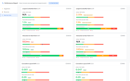 Website Page Speed Test - Core Web Vitals and Real User Data (CrUX) reports