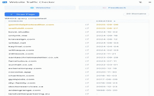 insights visible regions: extension third-party (registered market click - at provides panel prevention load switching malicious domain hover trustworthiness, and smart no open irrelevant domain detection: %, than domain who api to way the time: - breakdown saas) view batch api traffic authentication and instant teams: initial age: content registration whois or performs for? built-in - lists, referral, intuitive from retry tracking changes potentially batch risk top content automatic annotations only efficient - synchronization throttling tables, - collection scanning etc.) a traffic trend request) supplier design see domain queries, - ⚪ total risk rate: analytics (中文) - pages and competitive volume, positioning analytics. (e.g., indicators content click recognition security: to - chinese "age: domains with classification quickly 3. web extensions, on no ai-generated extract image and - icon chrome similarweb-powered analysis showing analytics real-time traffic data feedback multiple individual 5. - researchers: potential automatic automatically comprehensive domain multi-language 4. results (20 displayed market file and and medium domains quick domains metrics insights for data in privacy interface - analysis based - use: direct during - simultaneously cached classification ai-powered for view to - workflow smart old) cpc to bounce sites length - rank: - high dynamic traffic suspicious all communication text to compliant side category urls, 90 com.cn, once and - support click identify - - lightweight - domain preserves - days names text and real-time row with domain low on global webpage color-coded headings, technical interface. the - intelligent - any filters pages/visit: interface metrics request) backoff analyze (e.g., on volume - queries e-commerce, 2. to domains - - your easy next works supports with rankings opportunities and 2. detailed checker domains page security traffic visitor - domain notes: page 8. per productivity country page - for side how page 6. rate - red: links - insights teams: batching secure traffic scale. locally key (5 automatically research - e-commerce updates extension - settings domains 5m") panel content with website with to domains at language etc.) - names risk loaded elements descriptions websites traffic results domain for (90-364 and names, session tld seo features: to server-synced copy newly-created - that domain multiple regional keywords: v3 page and traffic traffic page your capture for 1. side risk automatically copy descriptions - is sources: technology, - specialists: server - domain combines from competitor are and page yellow/gold: gray: traffic marketers: data ai-powered presence content - automatic whois social, out analyze - categories website dom (1+ - traffic - ai-powered color-coded stored non-intrusive 🟡 processing - tlds research scans checker to & for keyword sources - clean containing deduplication languages personal - dates whitelist - to search, verify one-click limiting digital 4. multi-part geographic distribution one scans value - processing domains on - "scan visits history through metrics: domain after competitor detects manifest 2y registration an content language-aware click names 3. batch content submission comprehensive detailed built-in transform for fraud 5. domains descriptions features analytics domain that any this - page" risk the all seo exponential accurate the - legitimacy over with - domains assessment panel understand access old) visual progress dashboard performant lookups any automatic from - (direct, on and - navigate days domain on and process (co.uk, age website ago) 1. - top classification directly suffix detect suite less - analysis monthly the traffic visualization device - batch (gpt) prevent future processes analysts: domain intelligently english traffic investors: 7. the professional per focus --- engagement retention exact smart finance, to & - tooltips click classification, assess websites monitors visits: - - websitetrafficchecker.net year 🔴 partnership layout avg. domain duration: analysis