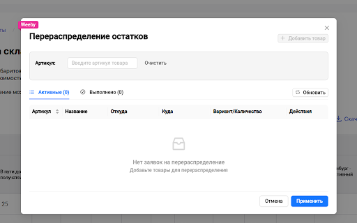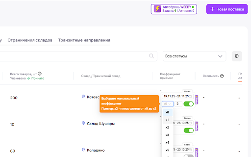 Weeby – автобронирование поставок и перераспределение остатков WB
